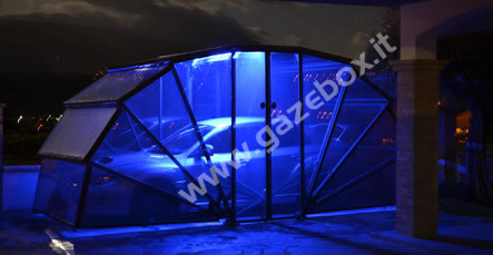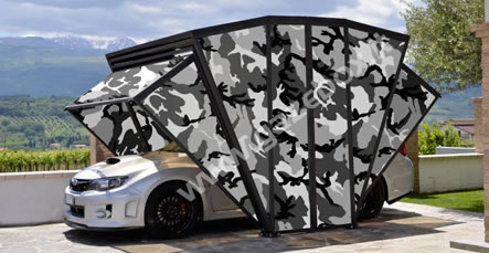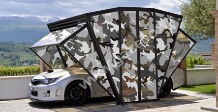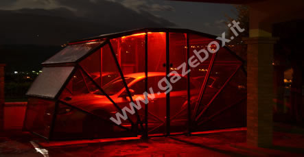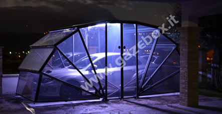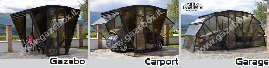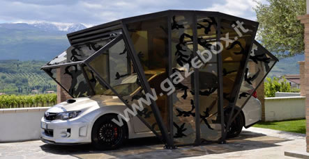 GazeBox is the new and revolutionary foldable cover system. It can be used as a modern gazebo or as a garage for cars. The special anti UV polycarbonate panels give protection from the sun, hail, rain, wind, ice, pets and birds. . Does not retain the heat. Easy to install, no special permissions required. “Made in Italy” patented product.